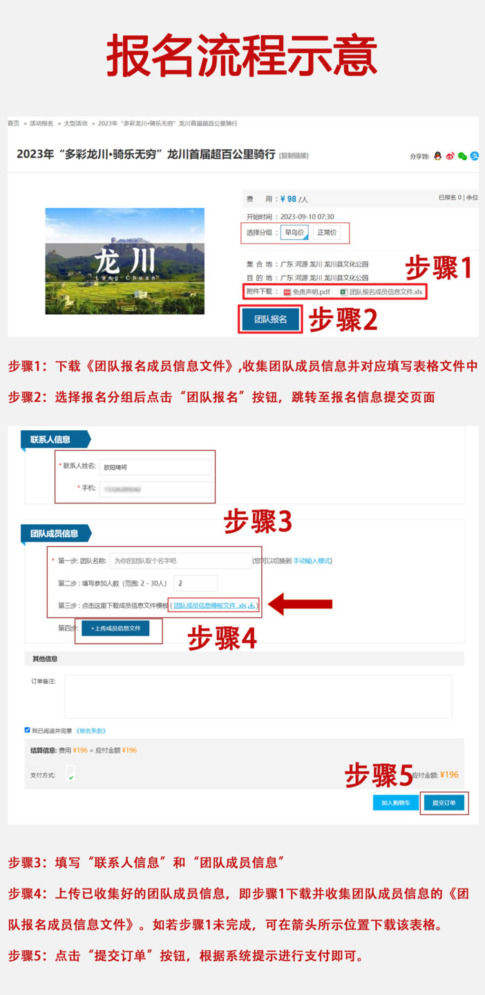 团队报名操作流程:2024年第二届“多彩龙川•骑乐无穷”龙川超百公里骑行